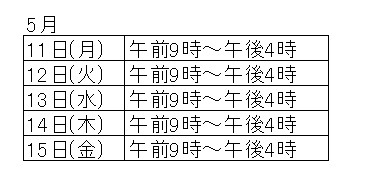 当社では、新型コロナウイルス緊急事態宣言発令の為、4月22日(水)から時間短縮・臨時休業としておりましたが、緊急事態宣言延長の為、5月11(月) ~5月15日(金)まで午前9時から午後4時までの短縮営業とさせていただきます。お客様には大変ご迷惑をおかけいたしますが、何卒ご理解、ご協力賜りますようお願い申し上げます。